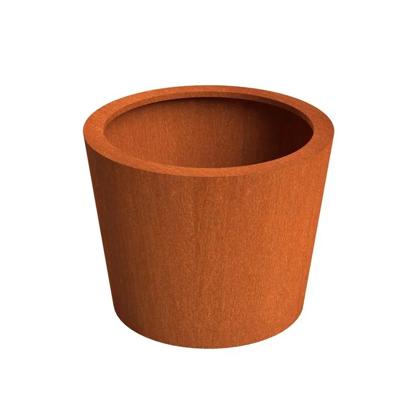 Ein moderner Blumentopf aus Cortenstahl (Edelstahl), der perfekt zu Ihrem Interieur und Garten passt.