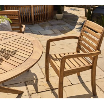 Der Cotswold Acacia Wood Armchair kombiniert klassischen Stil mit robuster Konstruktion und hohem Sitzkomfort. Gefertigt aus hochwertigem geöltem Akazienholz, besticht er durch natürliche Maserung und Wetterbeständigkeit, die sich ideal für Außenbereiche eignet. Mit einem Gewicht von nur 4,5 kg lässt sich der Sessel leicht positionieren und bei Bedarf umstellen. Sein durchdachtes Design bietet Unterstützung für Rücken und Arme und macht ihn zu einem hervorragenden Begleiter für entspannte Stunden im Garten oder auf der Terrasse. Im Lieferumfang enthalten ist 1× Cotswold Armchair mit 3 Jahren struktureller Garantie, die Langlebigkeit und Qualität des Produkts unterstreicht.
