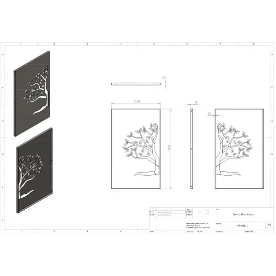 1100x50x1800 Aluminium Panel - Dekorative Wänd ADAPA8.1 (1pc)