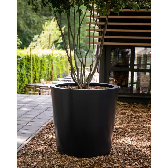 Der obere Rand dieser Pflanzgefäße ist zweimal umgedreht, was ihnen ein tolles zeitloses Aussehen verleiht. Die Pflanzgefäße sind aus hochwertigem, verstärktem Fiberglas gefertigt. Da die Bewehrung bis in die Ecken verlängert wurde, können diese Ecken nicht abreißen. Der Übertopf ist über das gesamte Material gefärbt und behält daher seine Farbe. Standardmäßig werden alle GFK-Pflanzgefäße in RAL 7021 geliefert.