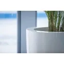 Der obere Rand dieser Pflanzgefäße ist zweimal umgedreht, was ihnen ein tolles zeitloses Aussehen verleiht. Die Pflanzgefäße sind aus hochwertigem, verstärktem Fiberglas gefertigt. Da die Bewehrung bis in die Ecken verlängert wurde, können diese Ecken nicht reißen. Der Übertopf ist über das gesamte Material gefärbt und behält daher seine Farbe. Standardmäßig werden alle GFK-Pflanzgefäße in RAL 7021 geliefert.