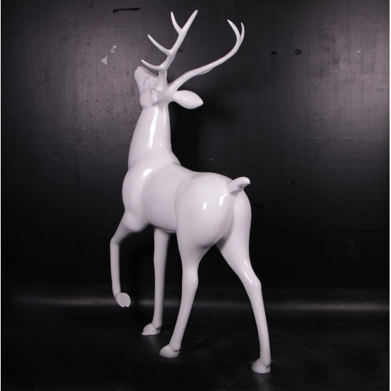 Der Royal Stag in glänzendem Weiß ist eine beeindruckende Dekorationsfigur für Weihnachts- und Winterlandschaften. Mit den Maßen L 136 x W 79 x H 213 cm und gefertigt aus wetterbeständigem Fiberglass Resin eignet sich die Figur sowohl für Innen- als auch Außenbereiche.