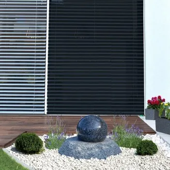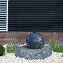 Für den Garten oder Teich. Massiver Quellstein als Sockel der Kugel mit eingebauter Granitkugel. Eine massive, kalibrierte Natursteinkugel rotiert auf einer dünnen Wasserschicht. Der Wassertank ist im Boden vergraben und mit dekorativen Steinen ausgekleidet. Die Pumpe befindet sich in der Schüssel und ist durch ein Loch im Deckel zugänglich, sodass sie leicht von außen eingestellt werden kann. Dieses Produkt wird in Europa hergestellt.