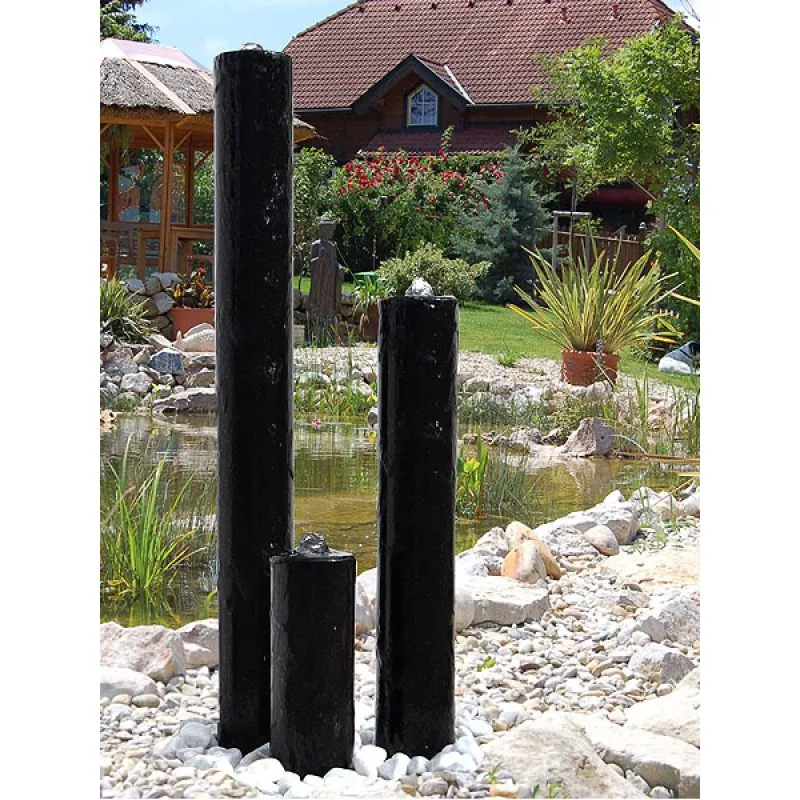 Das 3er-Set Gartenbrunnen aus Granit besteht aus einer Granitsäule mit einem Durchmesser von 10 cm und einer Höhe von 30 cm, einer Säule mit einer Höhe von 60 cm und einer Säule mit einer Höhe von 90 cm. Die Natursteinsäulen bestehen zu 100 % aus massivem Granit und haben einen Lochdurchmesser von 32 mm. Die Oberfläche ist auf Hochglanz poliert, was ihr eine exklusive Optik verleiht. Die aufwändige Behandlung hat den zusätzlichen Vorteil, dass das Anhaften von Schmutz und Kalk reduziert wird. Der Gartenbrunnen behält sein glänzendes Aussehen über Jahre, er ist 100 % frostbeständig. Der Brunnen muss nicht demontiert oder mit Folie zum Schutz vor Witterungseinflüssen abgedeckt werden. Öffnen Sie einfach den Ablasshahn, wickeln Sie die Pumpe in ein Baumwolltuch und der Brunnen ist bereit für den Winter. Sie erhalten einen kompletten Brunnen mit Grundausstattung - optional mit Quellenbeleuchtung in verschiedenen Farben erhältlich. Die Pumpen- und Leitungstechnologie ermöglicht es Ihnen, den Wasserdruck für jede Säule genau einzustellen. Die Einstellung erfolgt von außen über ein 3-Wege-Wasserventil, das fest im Deckel verbaut ist und somit bequem von oben verstellt werden kann. Lästiges Demontieren von Dekorationen oder Verschieben von Säulen entfällt. Inklusive Montage- und Pflegeanleitung.