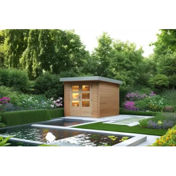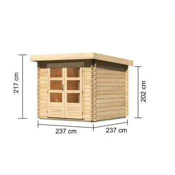 Ein modernes Blockgartenhaus, Modell Bastrup 2, ist eine harmonische Kombination aus Ästhetik und Funktionalität. Hergestellt aus nordischem Fichtenholz mit 28 mm dicken Brettern, zeichnet es sich dank des patentierten 6-Plus-Ecksystems durch Langlebigkeit und Eleganz aus. Die Struktur mit Außenmaßen von 237 x 237 cm ist stabil und solide, was Bastrup 2 zu einer idealen Lösung für Jahre macht.