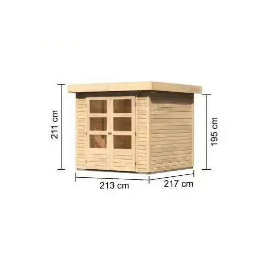 Egal ob modern, klassisch oder elegant, das Gartenhaus Askola 2 passt in jede Gartenatmosphäre. Mit den Außenmaßen (B x T) von 213 x 217 cm hat er die perfekte Größe, um Gartengeräte aufzubewahren oder einen gemütlichen Ort zum Entspannen im eigenen Garten zu schaffen. Das Haus ist auch mit aufgesetztem Dach in den Breiten 2,40 m oder 2,80 m erhältlich. Es eignet sich perfekt als Stauraum für Gartengeräte oder als gemütliche Sitzgelegenheit bei Grillabenden. Nichts hindert Sie daran, an einem regnerischen Sommertag sicher zu grillen.