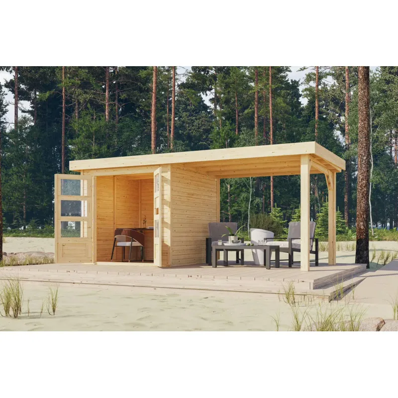 Egal ob modern, klassisch oder elegant, das Gartenhaus Askola 2 passt in jede Gartenatmosphäre. Mit den Außenmaßen (B x T) von 213 x 217 cm hat er die perfekte Größe, um Gartengeräte aufzubewahren oder einen gemütlichen Ort zum Entspannen im eigenen Garten zu schaffen. Das Haus ist auch mit aufgesetztem Dach in den Breiten 2,40 m oder 2,80 m erhältlich. Es eignet sich perfekt als Stauraum für Gartengeräte oder als gemütliche Sitzgelegenheit bei Grillabenden. Nichts hindert Sie daran, an einem regnerischen Sommertag sicher zu grillen.