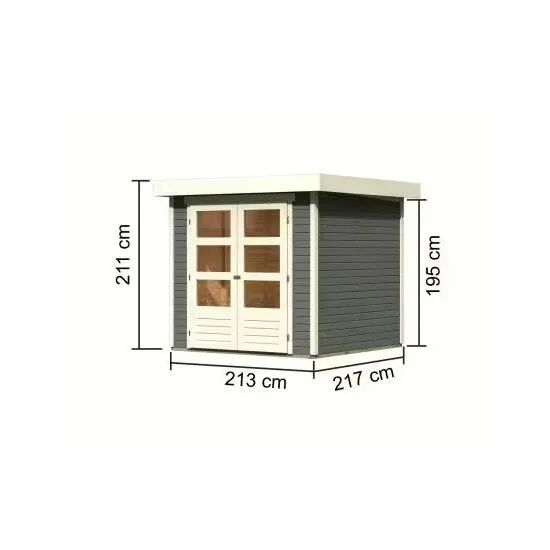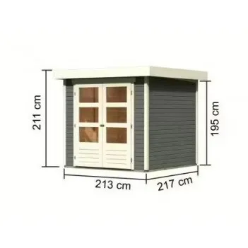 Egal ob modern, klassisch oder elegant, das Gartenhaus Askola 2 passt in jede Gartenatmosphäre. Mit den Außenmaßen (B x T) von 213 x 217 cm hat er die perfekte Größe, um Gartengeräte aufzubewahren oder einen gemütlichen Ort zum Entspannen im eigenen Garten zu schaffen. Das Haus ist auch mit aufgesetztem Dach in den Breiten 2,40 m oder 2,80 m erhältlich. Es eignet sich perfekt als Stauraum für Gartengeräte oder als gemütliche Sitzgelegenheit bei Grillabenden. Nichts hindert Sie daran, an einem regnerischen Sommertag sicher zu grillen.
