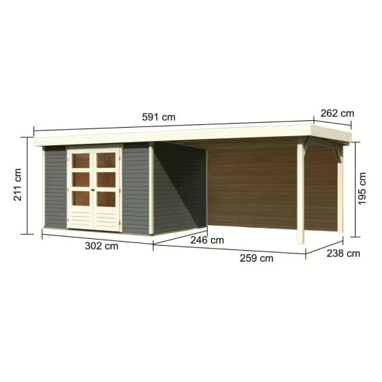 Gartenhaus Askola 5 grau, Breite 2,80 m, verlängertes Dach, Rückwand