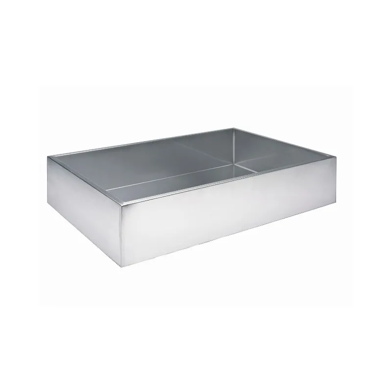 Gebürstete Edelstahltanks, speziell entworfen, um viele unserer Edelstahlbrunnen in geeigneter Weise zu platzieren Der Brunnen wird auf einem Edelstahltank auf Betonblöcken aufgestellt (einige Blöcke werden mit dem Brunnen geliefert). Die Höhe aller Tanks beträgt 20 cm.