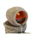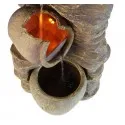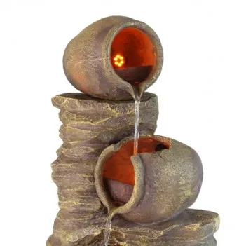 Aus hochwertigem Resin gefertigt und zusätzlich mit LED ausgestattet, sind diese schönen kaskadierten Ölkrüge leicht, stark und langlebig. Dies garantiert eine tolle Optik bei Tag- und Nachtbeleuchtung. Es wurde sorgfältig dem Aussehen und der Textur echter Ölkrüge nachempfunden und imitiert, als ob die Risse in ihnen selbst im Laufe der Zeit vom Wasser geformt wurden. Die Kombination aus klassischem Look und modernen Produktionstechniken macht den Brunnen sowohl frost- als auch UV-beständig, wodurch die Elemente den Auswirkungen von fließendem Wasser standhalten. Die eingebauten Niedervolt-Lichter beleuchten das Wasser und erleuchten sanft die gesamte Figur, wodurch einfach ein wunderbares Schauspiel entsteht, das für den Betrachter sehr beruhigend ist.