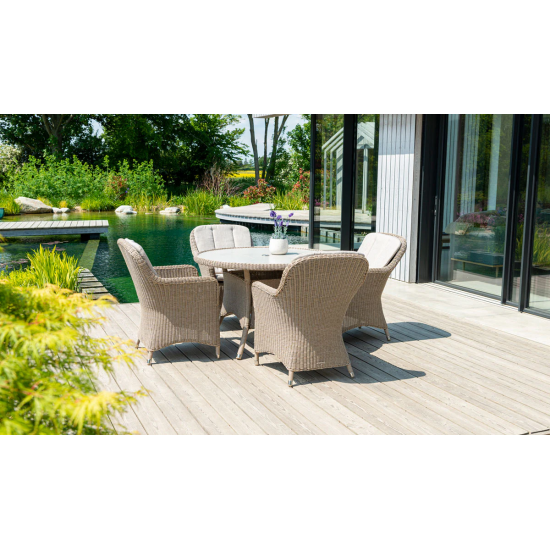 Der Hazelmere Lounge Armchair kombiniert Komfort, Stil und langlebige Outdoor-Performance. Ausgestattet mit einem leichten, pulverbeschichteten Aluminiumrahmen und einem klassischen 4 mm Rundgeflecht, bietet dieser Lounge-Sessel außergewöhnliche Wetterbeständigkeit und eine elegante Optik, die jeden Außenbereich aufwertet. Der tiefe Sitz und die weichen Polster sorgen für hohen Sitzkomfort beim Entspannen, Lesen oder gemütlichen Beisammensein. Die Abmessungen betragen 750 mm Breite, 750 mm Tiefe und 850 mm Höhe, was einen stabilen und komfortablen Sitzplatz schafft. Im Lieferumfang befindet sich 1× Hazelmere Lounge Armchair mit Sitz- und Rückenkissen in der von Ihnen gewählten Ausführung. Dieser Sessel passt perfekt zu weiteren Elementen der Hazelmere-Kollektion wie Sofas oder Kaffeetischen und ermöglicht die Gestaltung einer abgestimmten Loungelandschaft. Eine 3-jährige Herstellergarantie gibt Ihnen zusätzliche Sicherheit bezüglich Qualität und Langlebigkeit.