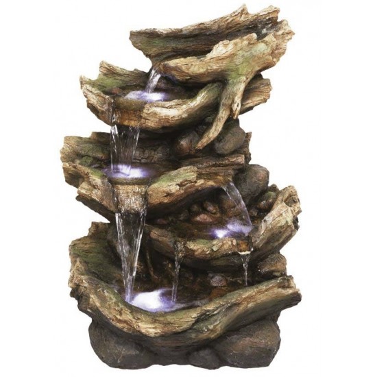 Der 6 Fall Driftwood Gartenbrunnen ist eine dekorative Lösung für Außenbereiche mit natürlicher Holzoptik. Mit den Maßen L 57 x W 40 x H 80 cm bietet er einen mehrstufigen Wasserfluss für eine beruhigende Atmosphäre. Gefertigt aus wetterbeständigem Kunstharz, ist er langlebig und ideal für den Außenbereich. Netzbetrieb und LED-Beleuchtung sorgen für zusätzliche Wirkung am Abend.