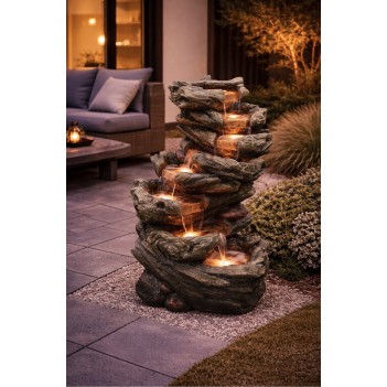 Der 7 Fall Woodland Gartenbrunnen ist eine dekorative Wasserinstallation im natürlichen Stil. Sieben Wasserstufen erzeugen einen beruhigenden Wasserfluss. Gefertigt aus wetterbeständigem Resin, garantiert er eine lange Lebensdauer. Integrierte LED-Beleuchtung sorgt für eine attraktive Optik bei Nacht. Maße: L 61 x W 45 x H 102 cm bieten eine perfekte Balance zwischen Präsenz und Eleganz.
