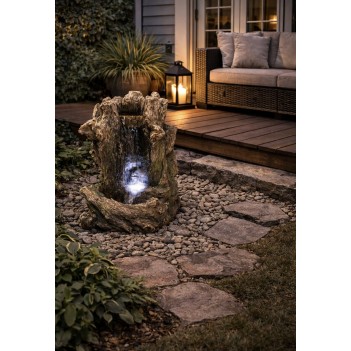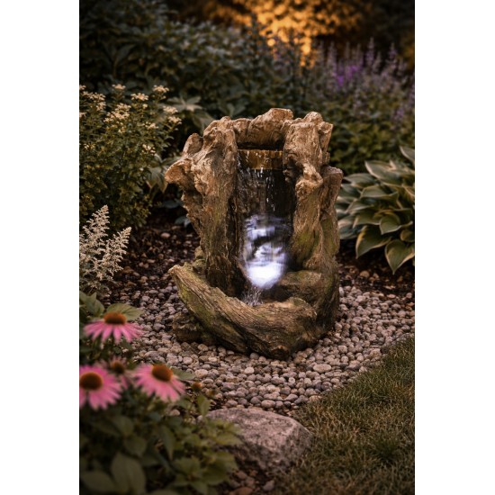 Der Woodland Waterfall ist ein dekorativer Gartenbrunnen im natürlichen Stil, ideal für Garten, Terrasse oder Patio. Die realistische Steinoptik und das sanfte Wasserplätschern schaffen eine entspannende Atmosphäre. Die integrierte LED-Beleuchtung hebt den Wasserfall bei Dunkelheit hervor. Maße: L 35 x W 35 x H 52 cm.