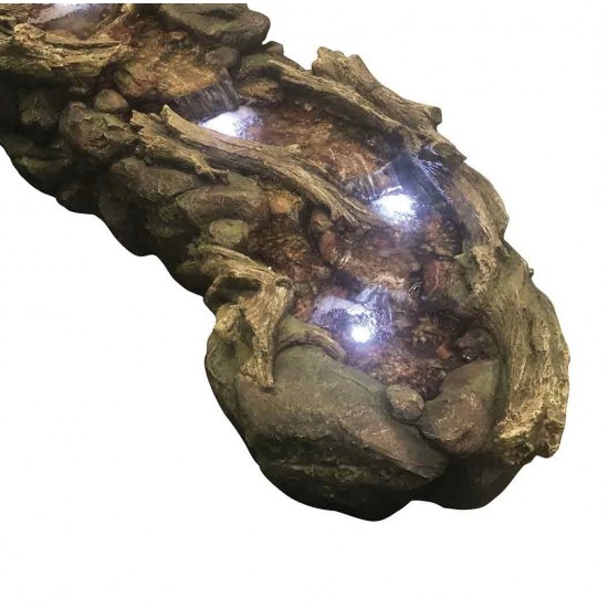 Der Woodland River Brunnen ist eine beeindruckende Gartendekoration, inspiriert von natürlichen Flusslandschaften. Realistische Steinstrukturen und fließendes Wasser schaffen eine entspannende Atmosphäre. Mit den Maßen L 265 x W 80 x H 88 cm ist er ein zentraler Blickfang im Garten. Robustes Material und LED-Beleuchtung sorgen für eine attraktive Optik bei Tag und Nacht.