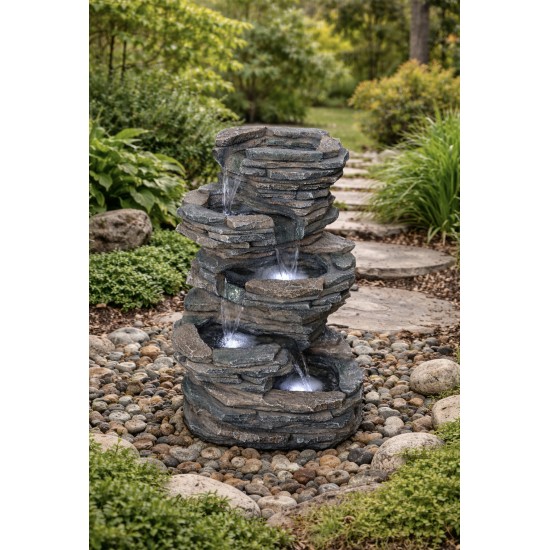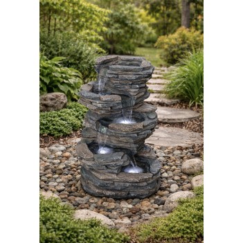 Der Hereford Slate Falls Wasserbrunnen schafft eine entspannende Atmosphäre durch sanft fließendes Wasser über mehrere Ebenen. Die Struktur imitiert natürliche Felsenformationen und erzeugt beruhigende Wassergeräusche. LED Beleuchtung hebt die Wasserbewegung hervor und sorgt für eine attraktive Darstellung am Abend.