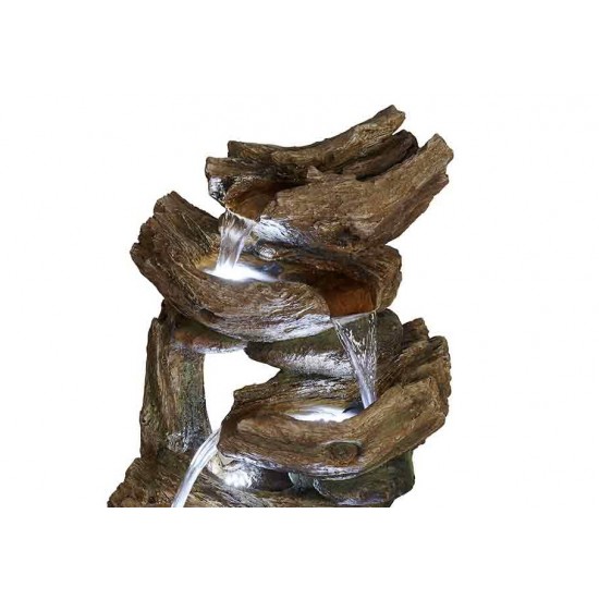 Der Gartenbrunnen Oregon Woodland Falls ist eine stilvolle Dekoration im natürlichen Woodland-Design. Die realistische Holz- und Steinoptik erzeugt den Eindruck eines echten Wasserfalls. Integrierte LED-Beleuchtung hebt den Wasserfluss besonders bei Dunkelheit hervor. Gefertigt aus wetterbeständigem Resin eignet sich der Brunnen ideal für den Außenbereich. Maße: L 47 x W 37 x H 105 cm.