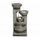 Die rechteckigen grauen Wassersäulen haben eine sehr fühlbare, gerillte Oberfläche, die Säulen haben scharfe Enden und das einzige Element, das sich vom rechten Winkel abwendet, ist der dreieckige Wasserfluss.
