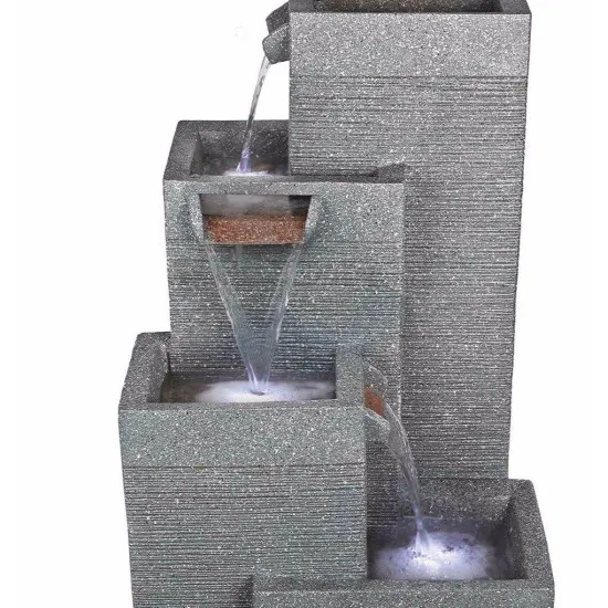 Bäche, die von der Spitze der Säulen strömen, öffnen die Wasserfälle zur Basis und kehren wieder zurück. Sie werden von hellen LEDs beleuchtet, die ihr Erscheinungsbild verschönern.