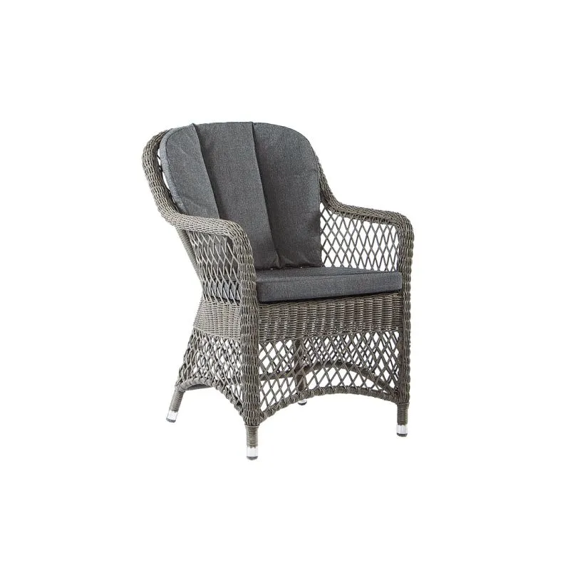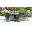 Monte Carlo ist eine Möbelkollektion, die in einer Fabrik in Cebu hergestellt wird. Strukturiertes 3 mm synthetisches Rattan vermittelt ein natürliches Gefühl, während dunkelgraue Polsterkissen das graue Gewebe vervollständigen.