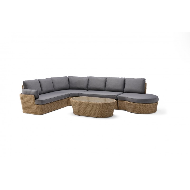 Das Palermo Empress Lounge Corner Set kombiniert mediterranen Stil mit hohem Komfort für Terrassen, Gärten und Outdoor-Bereiche. Handgewebter 6 mm Korbgeflecht auf einem robusten, rostfreien Aluminiumrahmen sorgt für eine wetterfeste, leichte und langlebige Lounge-Lösung. Die großzügige Eckkonfiguration bietet viel Platz zum Entspannen und geselligen Beisammensein. Die Sitzpolster sind aus schnell trocknender Olefin-Faser gefertigt, die UV-beständig ist und pflegeleicht bleibt. What’s included ist ein 2-Sitzer Sofa, eine Runde Chaise, ein Couchtisch mit Sicherheitsglasplatte und ein kompakter Beistelltisch – alles perfekt kombiniert. Die hochwertigen Materialien und die sorgfältige Verarbeitung gewährleisten Langlebigkeit und Komfort bei minimalem Pflegeaufwand. Unterstützt durch eine 5-jährige Garantie ist dieses Set eine hochwertige Ergänzung für jeden Außenbereich.