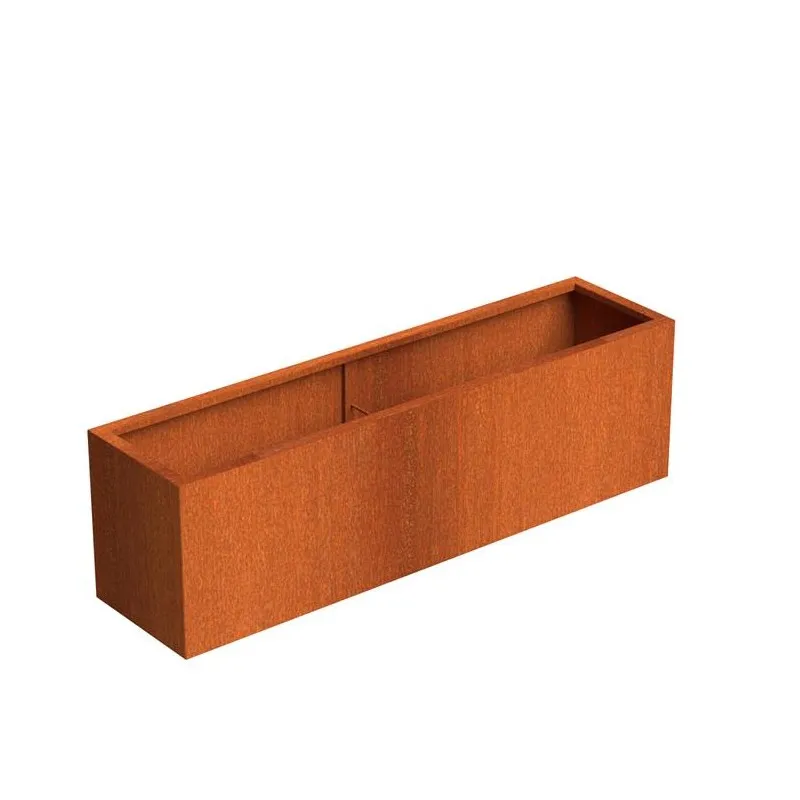 Cortenstahl, auch Verwitterungsstahl genannt, ist eine Stahllegierung aus Eisen mit Zusatz von Kupfer, Silizium, Nickel und Chrom. Sobald Corten Steel den Elementen ausgesetzt ist, es einen natürlichen Luftstrom hat und eine schützende Rostschicht bildet, kann es mehrere Monate dauern. Diese natürliche, feste Rostschicht schützt vor weiterer Korrosion. Ein Merkmal von Corten Steel ist Orange-Braun (Rostfarbe) und seine Langlebigkeit.