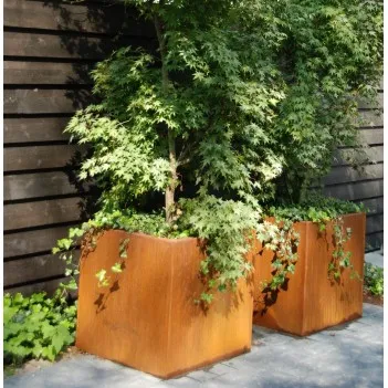 Ein moderner Blumentopf aus Cortenstahl (Edelstahl), der perfekt zu Ihrem Interieur und Garten passt.