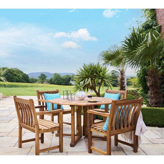 Der Redcliffe Gateleg Dining Table ist ein klassischer Garten-Esstisch aus robustem Akazienholz, der durch seine klappbaren Seitenflächen Platz spart. What’s included: 1× Esstisch. Maße: Breite 1200 mm × Tiefe 1200 mm × Höhe 740 mm. Garantie: 3 Jahre.