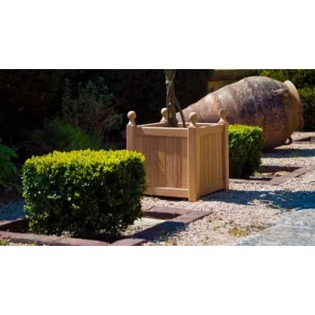 Diese hochwertigen Pflanzgefäße sind aus tropischem Hartholz gefertigt. Dies stellt sicher, dass sie umweltfreundlich sind und ein warmes und natürliches Aussehen bieten. Wir verwenden ausschließlich Hartholz der Festigkeitsklasse 2. Aufgrund der hohen Dauerhaftigkeit des Holzes ist keine weitere Bearbeitung erforderlich. Wenn die Pflanzgefäße unbehandelt bleiben, altern sie allmählich, was die Qualität der Pflanzgefäße nicht beeinträchtigt. Sie sind mit Edelstahlbefestigungen konstruiert, die Innenseite ist mit EPDM und die Unterseite mit Anti-Root-Material umwickelt.