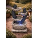 Der Solar Textured Bowls Gartenbrunnen verbindet modernes Design mit praktischer Solartechnologie. Mehrere strukturierte Schalen sind kaskadenartig angeordnet, sodass das Wasser ruhig von einer Ebene zur nächsten fließt und eine entspannende Atmosphäre schafft.