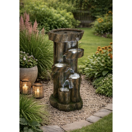 Der Solar Tree Trunk ist ein dekorativer Gartenbrunnen in Form eines Baumstamms, ideal für den Außenbereich. Mit Solarenergie betrieben und mit LED-Beleuchtung ausgestattet. Maße: L 34 x W 28 x H 80 cm, Gewicht 10 kg. Hergestellt aus wetterbeständigem Resin.