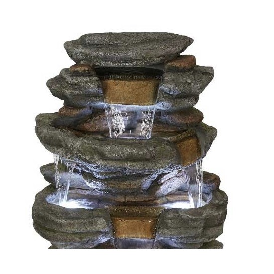 Der Cramlington Slate Multifalls ist ein dekorativer Gartenbrunnen im natürlichen Steinlook. Wasser fließt kaskadenartig und erzeugt eine beruhigende Atmosphäre. LED Beleuchtung sorgt für эффектvolle Darstellung am Abend.