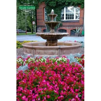Wasser fließt in der Mitte und an der Seite in das darunter liegende Becken oder Becken. Einer der größten Springbrunnen mit mehreren Entwässerungsquellen, der ein lautes Geräusch von fallendem Wasser erzeugt. Ein repräsentatives Produkt, das als Mittelpunkt zur Dekoration größerer Räume verwendet wird. In Kombination mit Halogenbeleuchtung ergibt sich ein elektrisierender visueller Effekt, der schon von weitem Aufmerksamkeit erregt. Das Produkt ist perfekt für einen Teich, es kann auch auf einer trockenen Oberfläche platziert werden. Die klassische Form des Brunnens ist perfekt für jeden Garten, Park, Restaurant oder Wohnhaus. Ein Springbrunnen mit einem Ring mit 24 Fontänendüsen in Kombination mit einer farbigen Halogenbeleuchtung macht einen verblüffenden Eindruck.