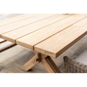 Der Teak Plank Table 3.0m aus der Signature Plank Kollektion von Alexander Rose vereint zeitloses Design mit funktionaler Robustheit. Die Tischplatte besteht aus fünf sorgfältig ausgewählten Teakholz-Brettern, die gleichmäßige Maserung und Farbe aufweisen und ihr ein harmonisches Gesamtbild verleihen. Die stabile Kreuz-Basis sorgt für eine sichere Standfestigkeit auch bei grosser Belastung. Dieser Outdoor-Esstisch eignet sich ideal für Gärten, Terrassen oder Patio-Bereiche, an denen grosse gesellige Mahlzeiten oder Familienessen stattfinden. In Kombination mit Bänken oder Stühlen aus den Serien Plank, San Marino, Monte Carlo oder Cordial entsteht ein einheitliches Ess-Ensemble im Freien. Das hochwertige Teakholz bietet natürliche Witterungsbeständigkeit und entwickelt mit der Zeit eine schöne silbrig-graue Patina, wenn es unbehandelt bleibt. 10-jährige Garantie bestätigt die hohe Qualität und Langlebigkeit dieses Tisches.