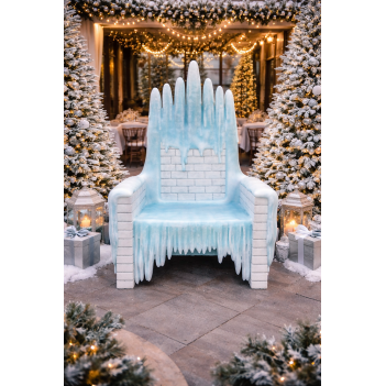 Dieser lebensgroße Eis-Thron bringt die Atmosphäre eines winterlichen Palastes in jede Veranstaltung oder Dekoration. Mit einer Höhe von über 160 cm wirkt der Thron besonders imposant und eignet sich hervorragend als Mittelpunkt von Winter- und Weihnachtsinstallationen.