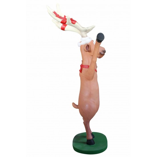Dasher Raising Hand gehört zu einer Kollektion dekorativer Weihnachtsrentiere aus wetterbeständigem Fiberglas-Resin und anderen langlebigen Materialien.