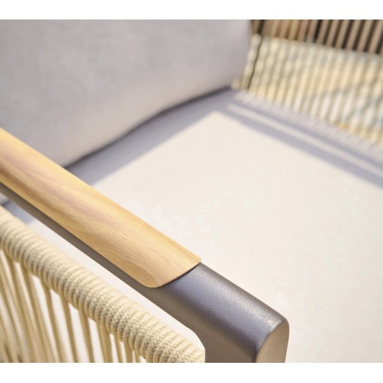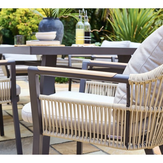 The Bali Dining Chair is a stylish outdoor dining armchair designed for comfort and durability. What’s included: 1 Bali Dining Chair, crafted with a rust-resistant aluminium frame, hydrophobic rope detailing and deep seat and back cushions. Dimensions: W 650 mm × D 630 mm × H 790 mm; Weight: 4 kg. Warranty: 3 years. Perfect for patios, balconies or garden dining areas, it pairs beautifully with Bali dining tables for a cohesive alfresco setup.