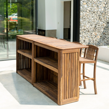 The Bolney Bar is an elegant outdoor bar crafted from durable Acacia hardwood, ideal for gardens, patios, and terraces. What’s included: 1 × Bolney Bar. Product specs: Width 1200 mm × Height 1050 mm × Depth 600 mm, Weight 55 kg. Warranty: 5 years. This outdoor bar features a handy shelf for accessories and a metal foot rail for added comfort, making it a stylish and functional focal point for outdoor entertaining.