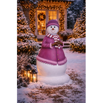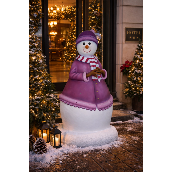 Mama Snow represents a charming maternal character from the snowman family – wife of Papa Snow and mother of Jack and Jane. Her gentle expression and welcoming appearance make her ideal for Christmas scenes, commercial displays, gardens, and themed environments. Crafted from high-quality fiberglass resin, the figure is designed to withstand various weather conditions, ensuring durability and long-term use. The freestanding structure allows easy placement without installation requirements.
