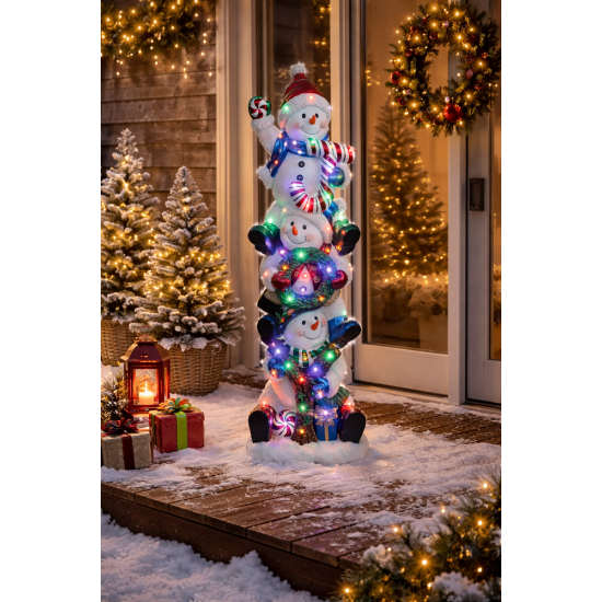 The Stacked Joy Snowmen 45 LED prop creates a vibrant festive scene that perfectly captures the spirit of Christmas. The playful vertical arrangement of three snowmen forms the word JOY, representing happiness and seasonal celebration.