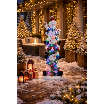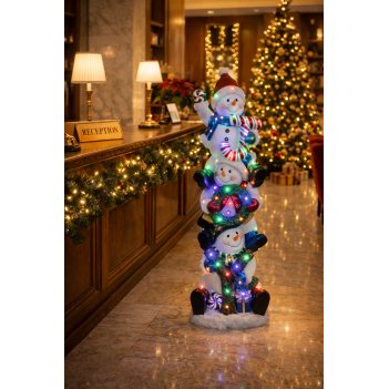 The Stacked Joy Snowmen with 45 LEDs is a striking Christmas decoration measuring L 48 x W 39 x H 152 cm, crafted from durable fiberglass resin. Three cheerful snowmen are stacked vertically while spelling J-O-Y, symbolising the joy of the holiday season. The integrated LED illumination creates a warm glow, making the prop ideal for shop displays, hotels, restaurants, Christmas markets, and outdoor festive environments.
