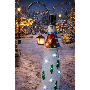 The Snowman with Lamp is a life-size Christmas decoration designed to create a welcoming winter atmosphere in festive environments. With a cheerful face, warm scarf, and classic lamp in hand, the snowman becomes a charming focal point in seasonal displays.