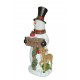 The Snowman with Tree & Lamp creates a picturesque festive scene reminiscent of classic winter storybooks. The friendly snowman, wrapped in a warm scarf, holds a traditional Christmas tree while standing beside a decorative lamp that illuminates the display with soft LED light.