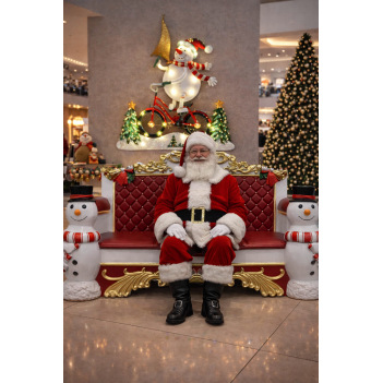 The Snowman Bench is a unique festive decoration and functional seating solution, perfect for shopping centres, winter gardens, and outdoor displays. Made from durable fibreglass resin, it withstands various weather conditions. Dimensions: L 203 x W 92 x H 112 cm, weight: 50 kg. Ideal as a comfortable seat and a charming Christmas photo spot.