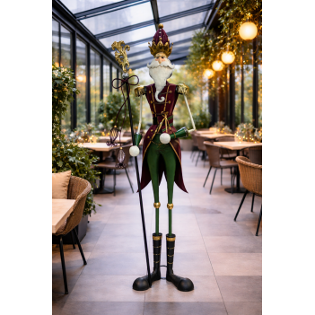 The Nutcracker with Crown is an impressive 191 cm tall Christmas decoration designed to create a festive focal point in homes, gardens, hotels, or commercial displays. Made from durable metal and equipped with LED illumination, this freestanding decoration combines classic holiday charm with a modern wired design. It is ideal for both indoor and outdoor use during the Christmas season.