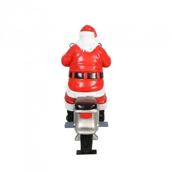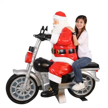 A large Santa Claus on a motorcycle is one of the decorations, all of which are available in a variety of weather-resistant fiberglass resin and durable metal options