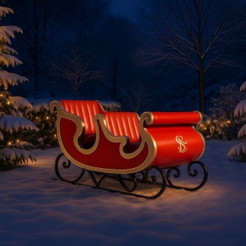 Santa's large sleigh is one of the decorations, all of which are available in a variety of weather-resistant fiberglass resin and durable metal options