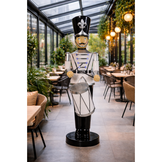 Toy Soldier with Drum (White/Black) is part of a wider collection of decorative nutcracker and toy soldier models. These figures are produced from weather-resistant fiberglass resin and durable metal, making them ideal for professional seasonal displays, themed attractions and commercial decorative installations.