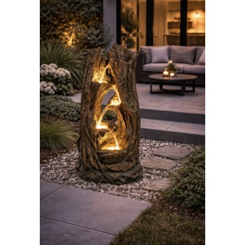 The Cannock Tree Trunk water feature combines natural aesthetics with modern functionality, creating a calming and elegant focal point for any outdoor space. Designed to replicate the appearance of a real tree trunk, it features highly detailed textures that blend seamlessly into garden landscapes, terraces, or commercial environments. The cascading water flow produces a soothing sound that enhances relaxation and creates a peaceful atmosphere. Integrated LED lighting highlights the movement of water and adds a striking visual effect during the evening hours. Powered by mains electricity, this water feature ensures consistent and reliable performance in all weather conditions. Crafted from high-quality resin, it is resistant to UV rays, moisture, and temperature changes. The structure is durable yet lightweight enough for easy positioning. Simple installation and low maintenance requirements make it an excellent choice for homeowners as well as hotels, restaurants, and outdoor leisure areas.
